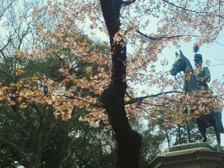 上野の森の京成口には毎年早咲きの桜があります。行った時は3本が満開に近く、この桜が散ると、ソメイヨシノが盛大に上野の森に春と大宴会を呼び込みます。
