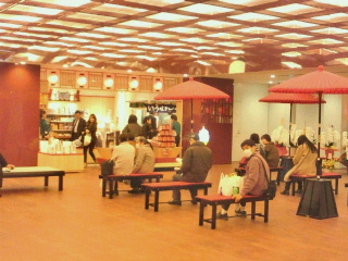 歌舞伎座はまだオープンしていませんが地下の地下鉄改札前のフロアーに歌舞伎座の土産店はオープンしています。目の前で鉄板で皮を焼いています。一番はその場で食べるアツアツの状態です。当然1つはその場で戴きました。