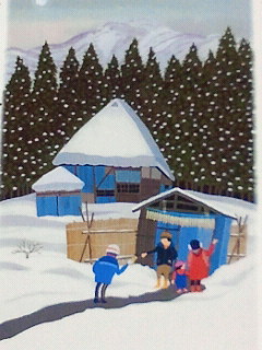 この人の絵は、人間が出ていますが基本は風景の中の一つとして描かれ、人間の顔には目も鼻も口もありません。頬に紅?的な色をつけているだけです。それでも作業をしている、動いている風に見えます。自然に溶け込んでいるから何でしょうか。