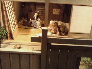 江戸東京博物館は両国国技館の後ろと云った位置に、変わった大きな建物です。1階は企画展用のスペース(現在尾張徳川家の至宝展)5,6階は常設展で大きな模型を展示して空中に日本橋が渡れ、下には江戸の町、歌舞伎中村座など、江戸の暮らしとして大名屋敷、武士の生活、町民の生活、商人の生活、江戸の四季、盛り場、祭り、文化、工芸、そして明治の文明開化の東京ゾーンなど多くのゾーン分けに資料もありますが、一目で解る模型や浮世絵、版画で展示されています。