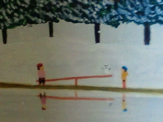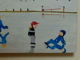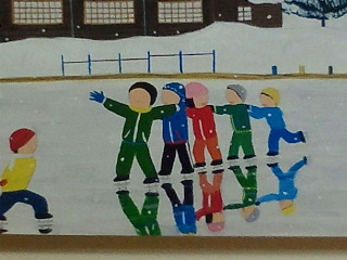 まだ30代の画家ですが現在も毎日新聞夕刊、毎週木曜日「帰りたい」挿絵、掲載中です。ほのぼのした近くにはスケート場はないのですが何となく昔の情景を思い出すような絵です。