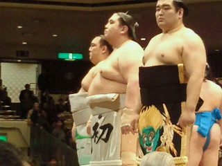 若手の親方が入り口傍の臨時売店で東日本チャリーティのTシャツ、産地物産などをかなりの声を出して販売。復興支援の一環だがもう直ぐ丸二年忘れてはならない事です。