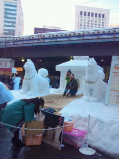 晴れて気持ちの良い日でした。東京駅から皇居沿いに歩き竹橋へ、そして帰りは竹橋から銀座をぶるっでなくぶらっと。銀座では秋田のかまくら、雪像など子供づれが楽しんでいます。やはり秋田の物産を購入。