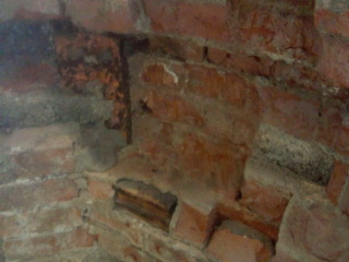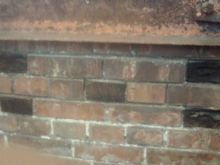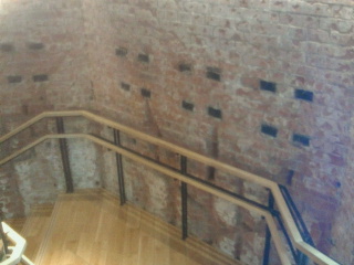 元々良く付ける為に漆喰を塗って、煉瓦の表面を削っています。そして漆喰が塗られた煉瓦壁に、腰壁等を固定するため、ネジやクギを受ける素材として構造用レンガの所々に木煉瓦という木製の煉瓦を入れていました。