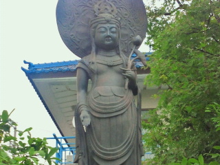 時間によってはランチも含め3時間位読書をして涼んでの散策をします。帰りも階段を下りて行きます。その階段横には長崎の有名な北村西望作の日蓮聖人説法像などもあり、此処からの眺めも絶景です。此処から横浜の花火?を見たこともあります。
