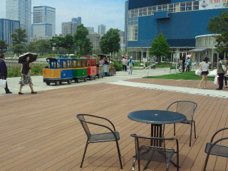 広場では家族ずれが楽しみ、イベント広場では午後からのショーのリハーサルが行なわれています。アベックなどは海を見ながら何を語っているんでしょうか。お台場のフジテレビ、近隣のタワーマンション、館内は100を越えるファション店舗、レストラン街、シネコン、子供の楽しみキッザニアなど此処はアーバンリゾートです。