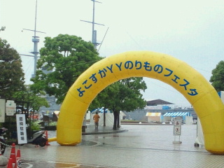 コーヒーを飲んでしばらく休み、また横須賀駅前のヴェルニー公園会場を見学、鉄道ブースは鉄道の方向版等のグッズ、Nゲージ、くじでの鉄道グッズ、子供には駅長の制服での写真コーナーなど、雨の為ミニSL乗車、ステージの催しは中止。
