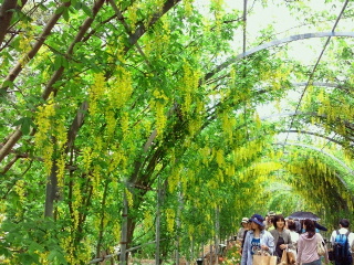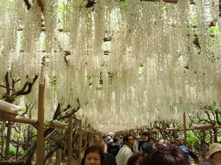 東武足利市駅からバスで25分位乗って到着、この時期はシャトルバスは300円です。藤の時期以外は無料、また入場料も藤の咲き具合で900円から1700円のようです。今回は1700円でした。