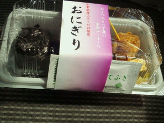 待ち時間に駅前?を散策しようと思うのですが全く何もなく店まで開いていない状態です。非常食で用意していた木更津駅で購入したおにぎり弁当を食べたりして過ごしました。おにぎりは全部海苔で包まれ、昆布とあさりです。おかずが鳥の唐揚げ、卵の厚焼きです。この海苔は解りませんが千葉の海苔は昔からおにぎりに巻いても歯切れが良く香が良いので有名です。