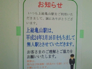 約32K駅数14で大半が無人駅、木更津から終点上総亀山までは約1時間の乗車です。今回のダイヤ改正で終点の上総亀山駅も無人駅に。その為車掌が乗務して検札、改札、車内販売を兼ねる。JRの地方交通線で何時廃止になっても可笑しくない路線で朝夕以外は特別な事がない限りガラガラの列車です。