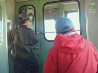 乗車はキハ37と30の接続です。どこかに国鉄色が残っていないか探しますがペイントもされて中々見つかりませんが製造年プレート位でしょうか。今は珍しい扇風機もJRになっています。雪国で見かけるドアの開閉ボタンも今では中々首都圏では見なくなっています。