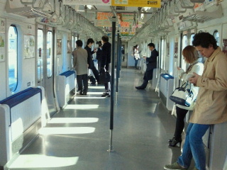 秋葉原で総武線に乗り換え千葉方面へと向かい途中久しぶりに座席なしの車両に乗りました。総武線は東京で一番混雑率が高い路線と聞いていましたがまだこの様な車両があるんですね。一時山手線や京浜東北線でもこの車両がありましたが今はほとんど見かけられなくなりました。この車両は良いと言う人、厭だと言う人と分かれます。関西だったら絶対にない車両です。