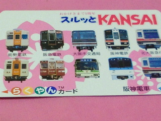 私鉄では関西が早く左上から阪神ハープカード、京阪Kカード、南海マイチケットなど各社独自のプリペイドカードを発行して1996年に各社連合体で1枚あれば改札機を通れるスルッとKANSAIが発行されました。関西圏はJRと同じような競合する路線が多く関東などに比べると車両もサービスも断然上を行っています。