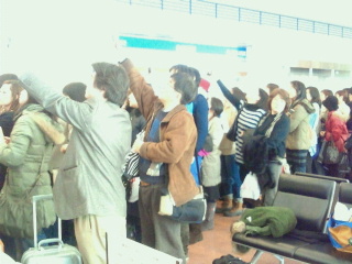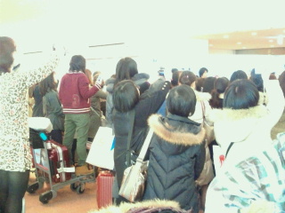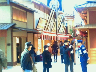 やっと待ってきたらワァー、キャーの歓声、何秒なんでしょうかあっという間に毛糸の帽子をかぶり通り過ぎて行きました。それをまた皆さん追いかけていきます。韓流スターのようでした。娘はツイッターでチャン?何々と言っていましたが私は解らず。マッコリの宣伝をしている人のようです。
