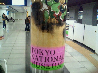 我々のフライトは京急でした。駅にはなぜか東京国立博物館の告知ポスターや柱まきが沢山、さて近じか私は東京国立博物館へGOしよう。