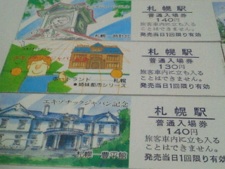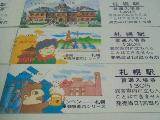 下の写真は国鉄時代の札幌駅D型入場券で絵柄は時計台や道庁、豊平館、姉妹都市のミューヘン、ポートランドなどです。エキゾチックジャパンキャーンペーン当時のものです。(1984年から)このキャーンペーンの前はディスカバージャパンキャンペーンでエキゾチックジャパンは国鉄分割民営まで続けられました。郷ひろみの歌が懐かしいです。