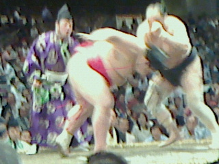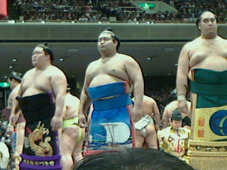 十両土俵入りで慌てて席に戻り朝弁慶を応援しましたが残念ながら今日も負けてしまいました。取り組みの呼び出しは邦夫。