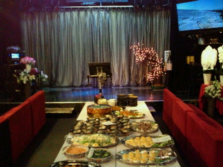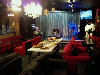 唯一このお店のママが作ったサンドイッチが一番美味しかった。知らないで言ったんですが石田さんに聞こえてしまったのですごすご帰宅をしました。石田さん、ママさん御馳走様でした。写真は左から気配りのママさん、大きなステージのお店風景。料理はキャビア、カラスミなどにカレーやきそば、なます、から揚げ、寿司など多種多彩。