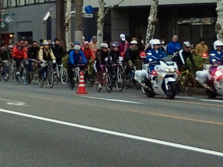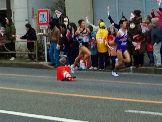 予想に反し早稲田が独走で縦長のレースに写真を撮る為反対側に行きましたが関係の車が多く選手と被る。トヨタのCM入りネックウオーマー、今年の小旗はプラ製、一昨年は布製、梅屋敷駅前は明治の応援団。なぜか選手が通過したら大勢のチャリンコ部隊、これで箱根まで行くのだろうか。