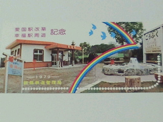 今またこのような時代で87年に廃線になっていますが観光客が幸福駅へ訪れているようです。厭な事があっても此処へ来るとリセットされる。外国人にも幸せを呼びそうな文字が好評とか。駅内には名刺やメッセージが沢山書かれているようです。
