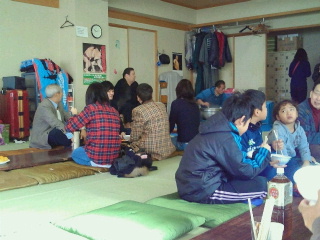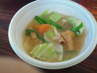 おもちを戴いて2階の大部屋でちゃんこを戴きました。今日はみそ仕立ての豚バラでした。つみれが何とも美味しくお代りをしてしまいました。