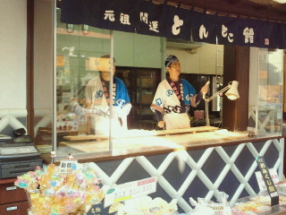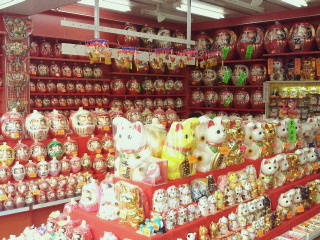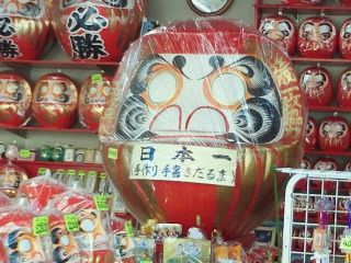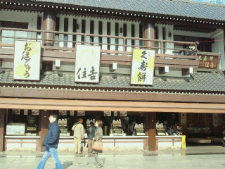 今日は土曜日ですが参詣客は少なく参道のお店の人も手持ちぶたさです。川崎大師と言えば葛餅、とんとこ飴、せきどめ飴などの飴、だるまなどが名物です。葛餅屋、飴屋、だるま屋さんも沢山のお店があります。