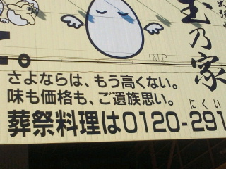 二段目左はお弁当屋さんですが法事の食事もやっているようですが「さよならは、もう高くない」というフレーズに驚きました。値段が安い事を言いたいのでしょうが余りにも乱暴な言葉です。