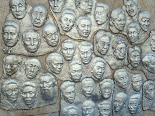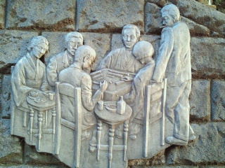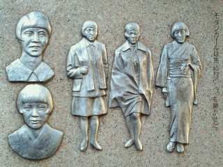 この神社の階段横に生活道路の狭く急な階段があります。そこの壁際には馬込文士村の多くの人たちのレリーフが飾ってあります。文士達もこの階段を歩いて大森駅へ向かった事でしょう。
