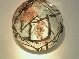 今回の展示は新しいものは色絵皿や赤い皿程度で大体前に見たようなものです。大きい壺なども前に見たような気がします。初めてのものも何点か有りました。大震災ではやはり倒れて割れたようです。此処はピアノ線で固定していないので前に見たときから何でと思っていました。