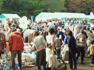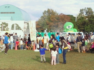 流石に震度7体験は多くの人が並んでいます。フリーマーケットも広大な芝生の中で行なわれています。