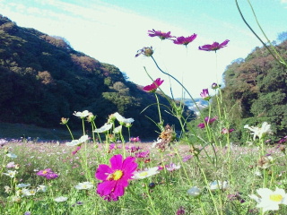 元々は米軍の倉庫があったところで23,000㎡に秋はコスモス、春はポピーが一面に咲き乱れています。コスモスは100万本だそうで、最終日には好きなだけ切って持っていってもらうイベントがあります。