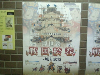 今回の展示は来月の27日まで開催されています。作品は前期、後期で入れ替わります。第一章浮世絵に描かれた戦乱の時代これは信長が統一する以前、信長、豊臣秀吉、そして徳川時代に分かれます。第二章は城をめぐる攻防、第三章が風景画に描かれた名城とに分かれています。