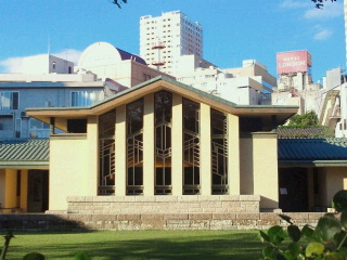 この建物「明日館」はフランク・ロイド・ライトと遠藤新の共同設計だそうです。帝国ホテルなどを設計した近代建築の巨匠だそうです。卒業生は孫の羽生進、岸田今日子、山本直純、オノ・ヨーコ、坂本龍一、秋篠宮紀子様、黒田清子様など。