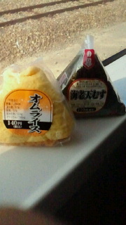 今回みたいなずっと乗り継ぎ乗り継ぎで行く場合、私は非常食としておにぎりやパンを買っています。時間があれば駅弁を購入できますが新幹線でも売り切れが出たりしますので必ず朝、乗る前に購入しています。かみさんからは何処でもあると言われますがオムライスのおにぎりなど今まで見たことも食べた事もない物にぶつかることもあります。ちょっと嬉しくなります。