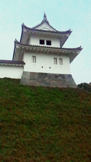 たった一つの多門櫓を見に行きました。JR駅ではわざわざ案内の紙まで戴いたのですが現在修理中で中が見えません。これしかないのにちょっと言ってくれればがっかりしなかったのに。暑い日で非常に残念でした。広重の絵でお城を想像するしかありません。絵の右上がお城。(浮世絵はウィキペディアより)