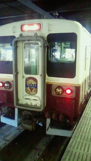 JRでの日光は行ったことがありませんが東武駅の傍にあるのは知っていますのでたった6駅なのに案の定接続も悪く、1時間に1本、45分も掛かりました。電車は単線でホームも此処だけ世界遺産用だか茶色と金で装飾されています。車両も茶色、金でヘッドマークまで付いています。しかし、クモハ107の古いタイプ。