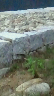 石垣は防御線ですから外には角度をつけ中は緩やかな角度にしながら見た目もきれいな石積みをしなくてはなりませんし、時間で雨水が溜まりそれを吐き出す水はけの良い石垣積みの技術が必要です。(写真は新しい石垣積み)