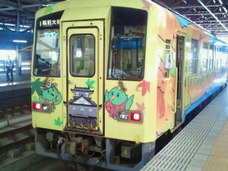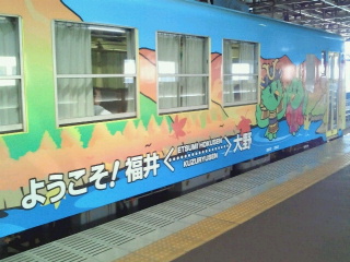駅にも水があり冷たくとても城攻めの後には美味しい水でした。昨年の430年祭りからのラッピング列車で心地よい疲れと共に福井へ。