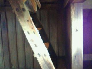 翌日は早朝から県庁のある福井城址を散策、8時前には丸岡城へ、8時開館かと思えば8時半との事で汗ばんだ手を蚊に刺されながら待つ。やっとこ登る、やはり古いお城ですから天守までの階段は狭く、極端に言えば直角、誰もいないのでディバックは階段下へ。今までの階段の一番の鋭角かもしれない。ロープがついています。