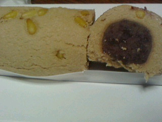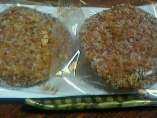 見た目は伊勢の赤福に似ていますが、餡の甘味舌触りが少し違います。ママリン、娘の合格点が出ず何とか頑張って戴きました。松本城内のお土産屋で購入。