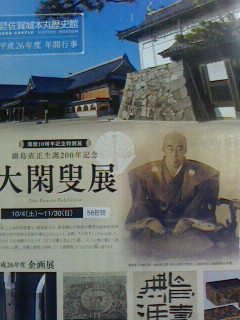 明治時代の佐賀の乱で大半の建築物は鯱の門、続櫓を残し消失している。現在は木造で本丸御殿が忠実に再興されて歴史博物館になっている。見学は案内までついて無料。館内で鍋島直正生誕200周年の大閑叟展が開催中。