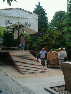 山門入口までは藁に巻かれた三匹の龍に多くの人が掛けます。しかし山門内からは水止めとなり3匹の龍が舞を踊ります。まぁ今日は朝から腕に痛い位の日差しの気候ですから雨は最初から降ってはいません。