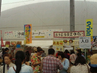屋台は沖縄そば(八重山、宜野湾、もずく、宮古いかすみ、木灰,やんばる、汁なしなど)。沖縄焼きそば、ゴーヤチャンプル、かき氷もマンゴー乗せ、つまみも島らっきょ、八重山蒲鉾、海ぶどう、大きいスパム串、お菓子も初めて見た黒糖アガララサーなどの蒸し菓子。ビールは当然オリオン、泡盛は全銘柄に近く有名な物、初めて見る銘柄など。