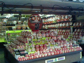 当然多くの参拝者が訪れていますので縁日の屋台や猿回しなども賑やかに人を集めています。やはり川崎大師はだるまでだるま屋、くず餅屋、とんとこ飴、手焼きせんべい屋、海苔屋などが参道に並んでいます。