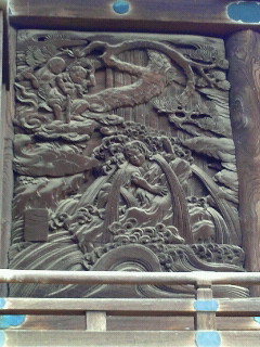 御獄神社は彫刻が沢山彫られた引き戸が神社裏側に4面飾られています。また御獄神社講の沢山の碑が置かれています。昔は木曽へ行けない信者などで大変賑わったようです。