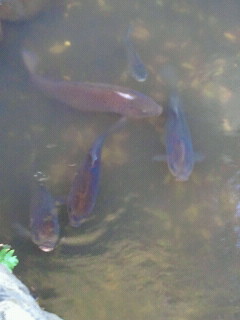細い道ですが枯葉舞う静かな小道です。水がきれいで鯉などがたくさん泳いでいます。