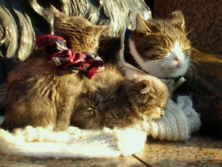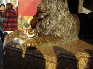 三越は入口のライオンがシンボルですが、今日は大勢の人がカメラを向けています。ライオンの足元に生後数ヶ月の子猫達が置かれています。