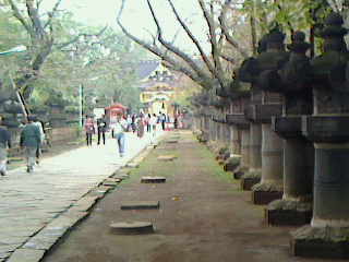 学問の神様ですから合格祈願の絵馬が山のように重なっています。また境内には泉鏡花の筆塚、猿回しなども行われています。狭い参道には沢山の屋台が子供たちを集めています。