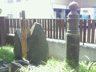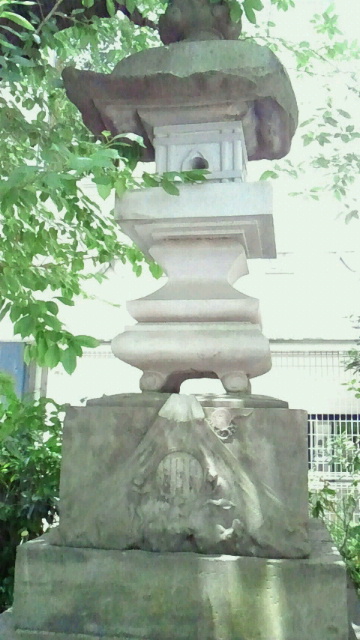 大正大震災で崩落し三輪神社に移築されたが昭和61年に境内改築のため大田区へ寄付された。大田区は火袋、竿石など欠落したものを復元し三輪公園に移築しています。(画面で白い部分が復元されたところ)