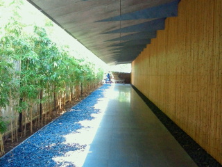 根津美術館は入口から生竹と細竹竿で囲んだ石畳のアプローチで中々雰囲気が有ります。そして降りませんでしたが庭園が綺麗に作られています。